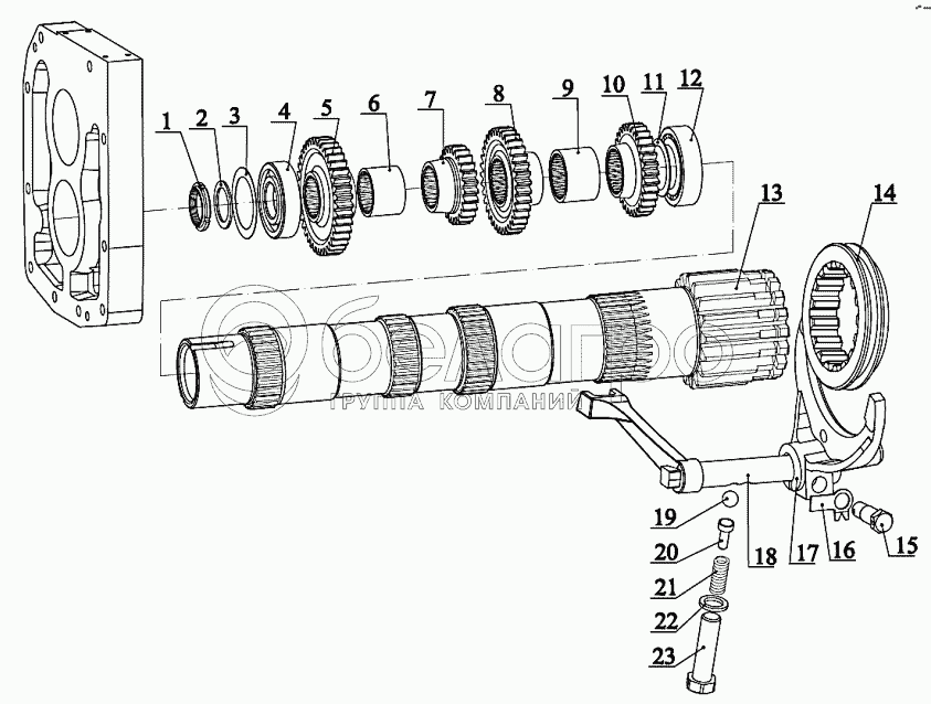 Каталог запасных частей к технике: МТЗ 2122.3/2122.4. Узел передач. Вал промежуточный
