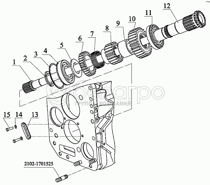 Каталог запасных частей к технике: МТЗ 2122.3/2122.4. Вал блока шестерен