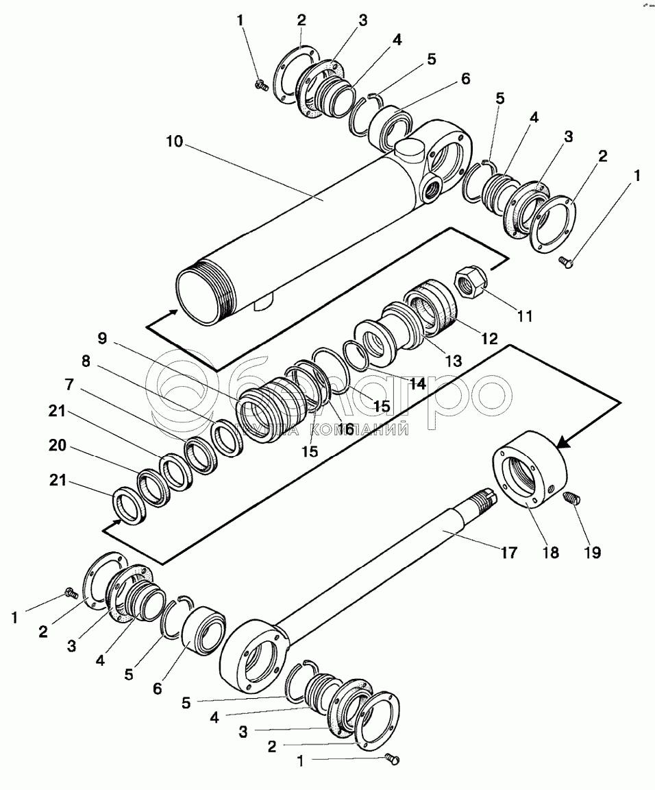 Каталог запасных частей к технике: МТЗ 3022ДЦ.1. Гидроцилиндр Ц63 (63x30-250)