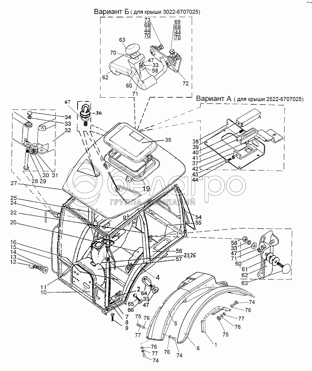 Каталог запасных частей к технике: МТЗ 3022ДЦ.1. Кабина. Крылья задние