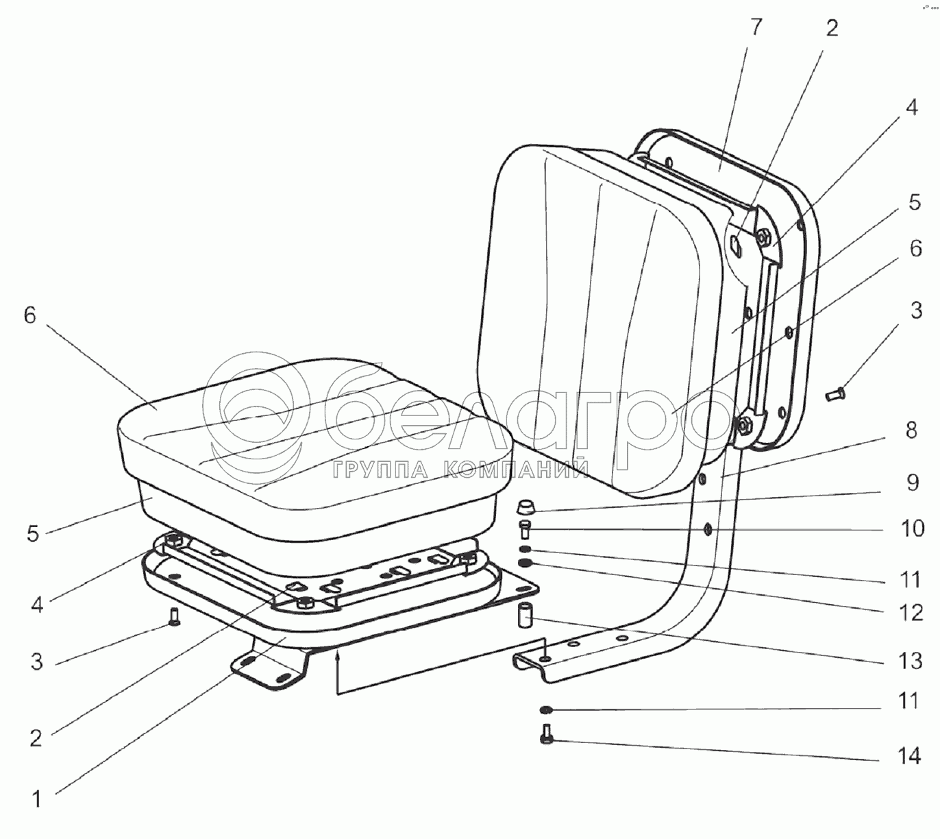 Каталог запасных частей к технике: МТЗ 3022ДЦ.1. Сиденье дополнительное