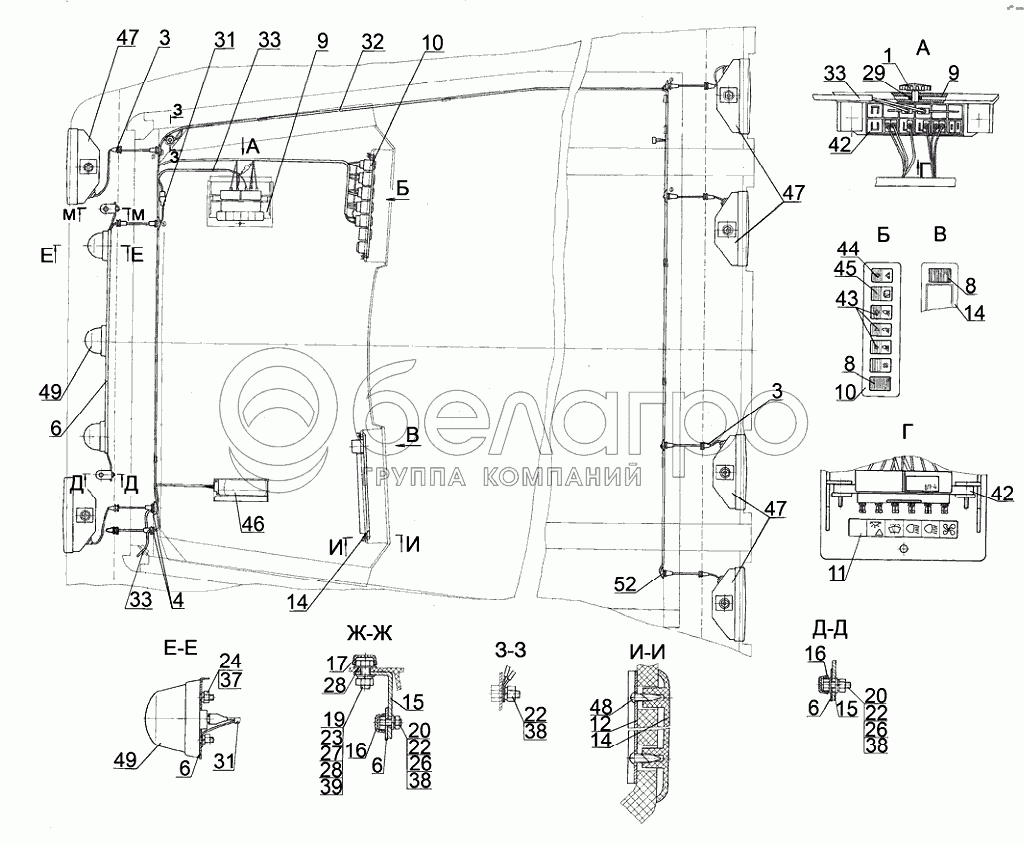 Каталог запасных частей к технике: МТЗ 3022ДЦ.1. Установка фар рабочих