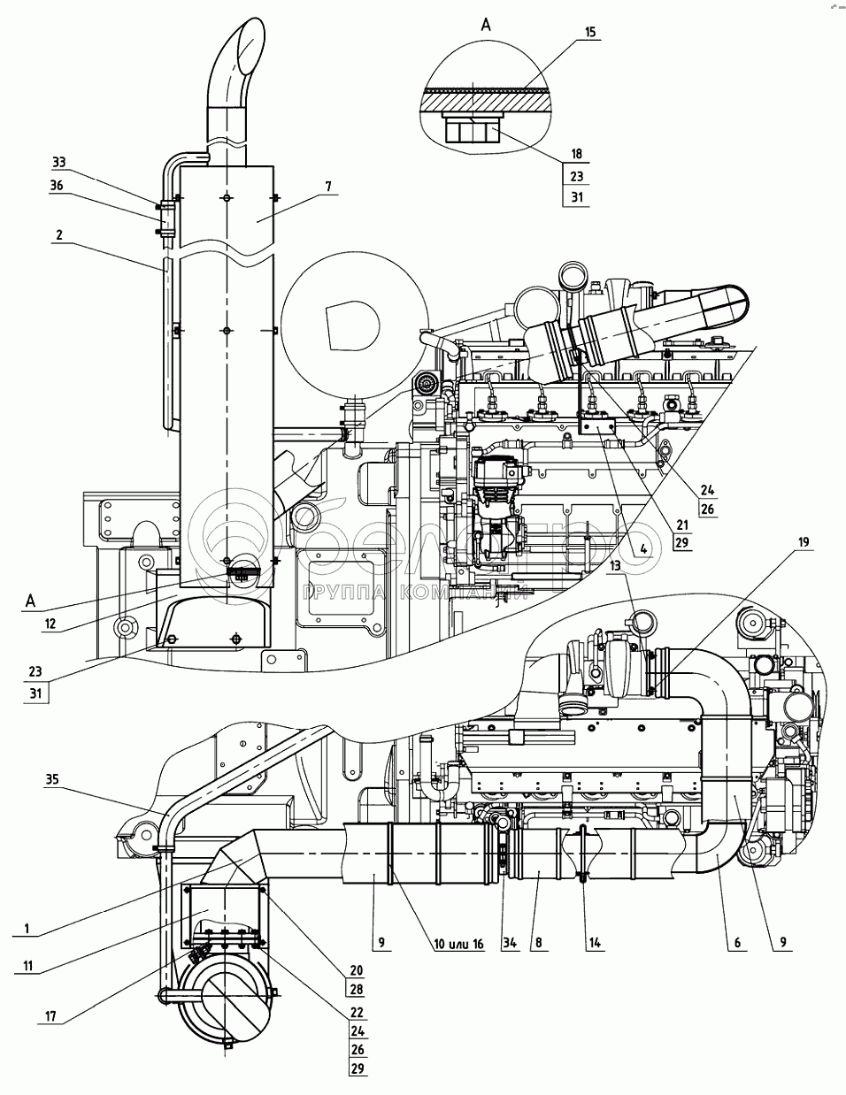Каталог запасных частей к технике: МТЗ 3022ДЦ.1. Установка глушителя