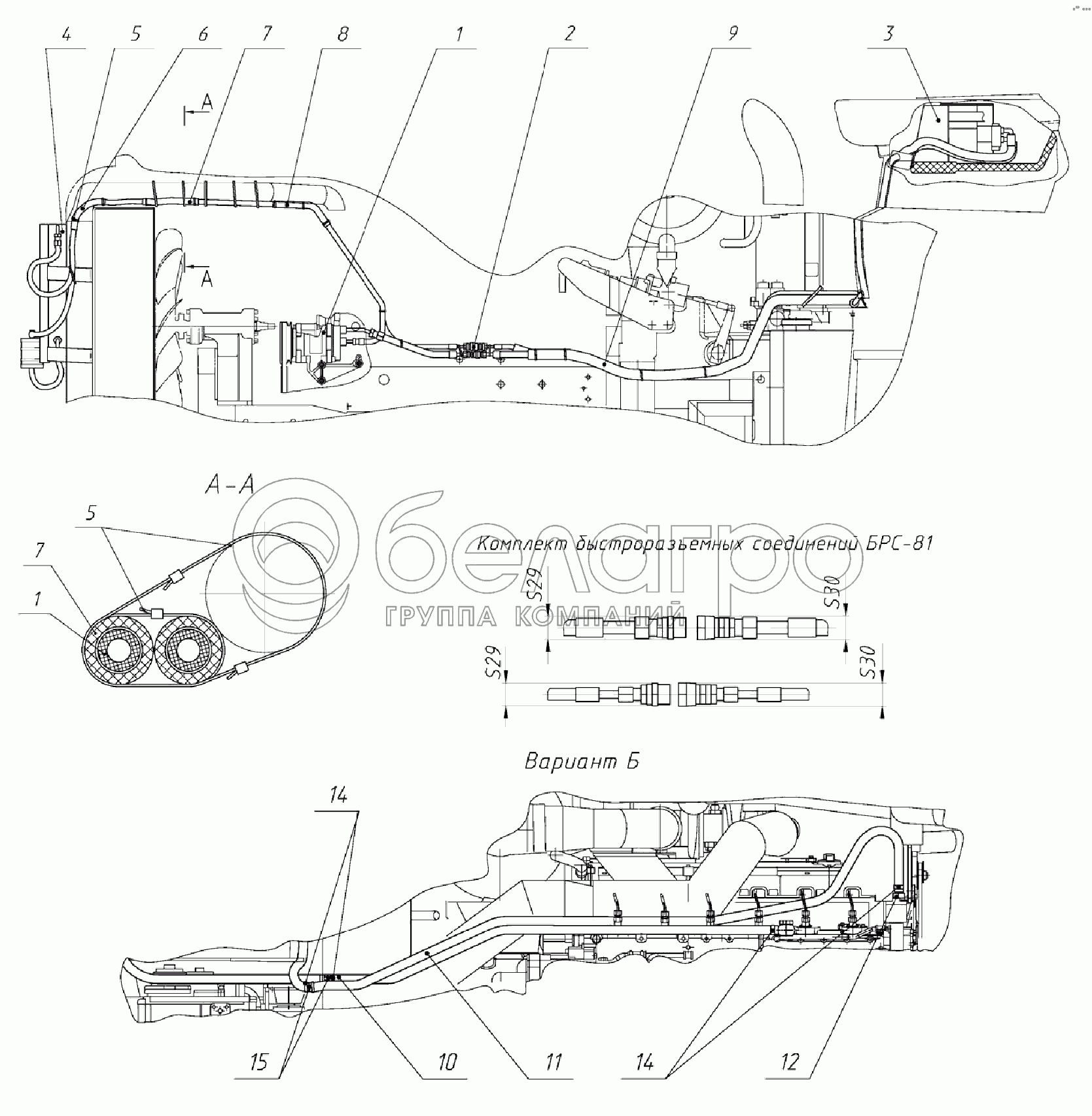 Каталог запасных частей к технике: МТЗ 3022ДЦ.1. Установка шлангов кондиционера Вариант Б