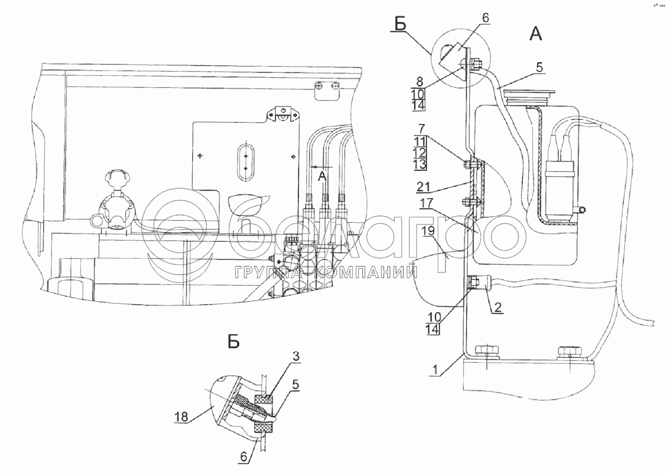 Каталог запасных частей к технике: МТЗ 3022ДЦ.1. Установка стеклоомывателя заднего