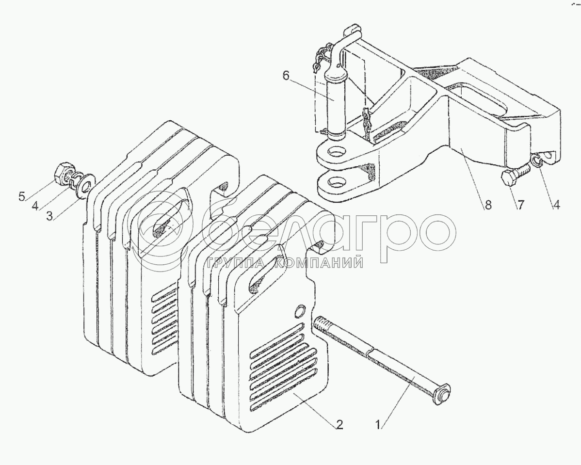| 210-4235010 Груз дополнительный МТЗ-320 8х20кг комплект(кронштейн, струна и крепёж) передние, БЗТДиА |