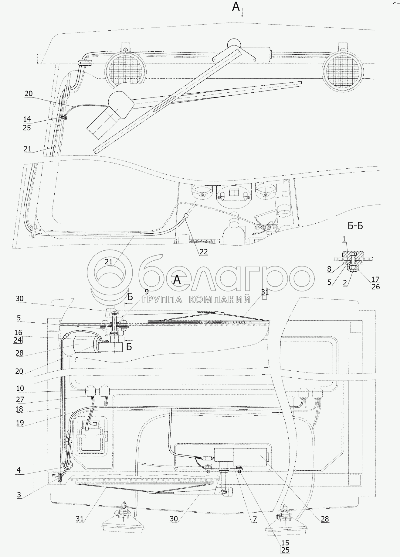 Каталог запасных частей к технике: МТЗ 320.4М. Установка стеклоочистителей