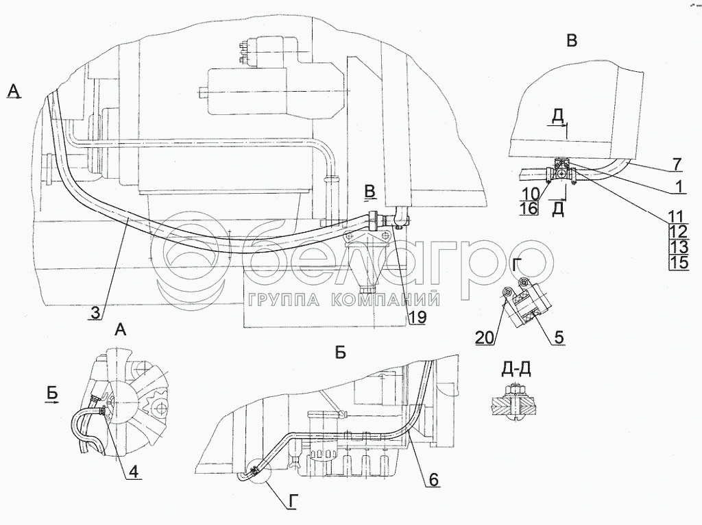 Каталог запасных частей к технике: МТЗ 622. Трасса шлангов отопителя