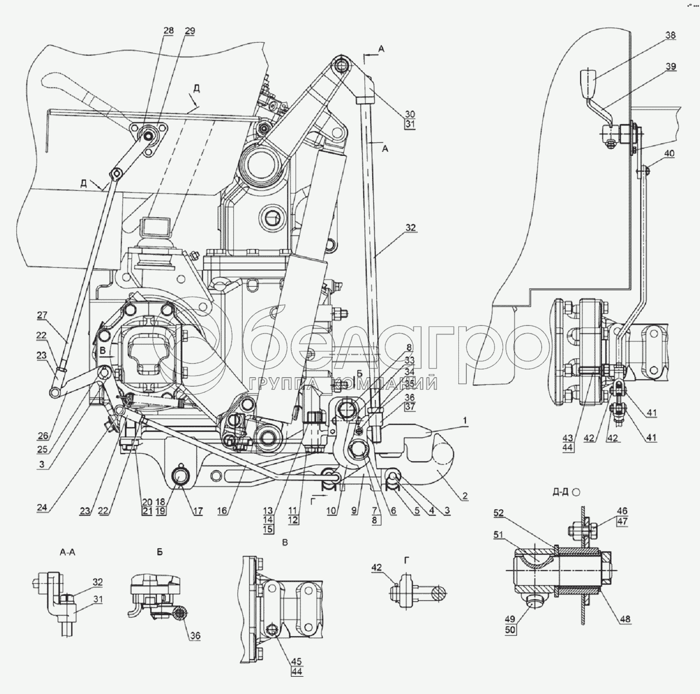 Каталог запасных частей к технике: МТЗ 622. Тягово-сцепное устройство. Вариант «крюк»