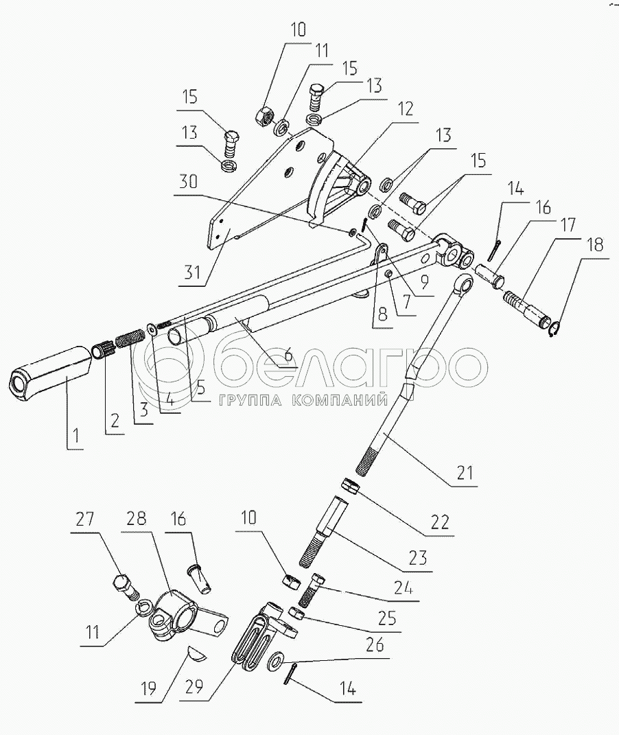 Каталог запасных частей к технике: МТЗ 622. Управление стояночным тормозом