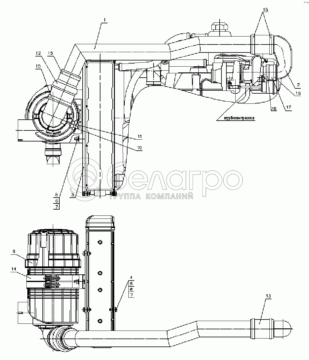 Каталог запасных частей к технике: МТЗ 622. Установка воздухоочистителя