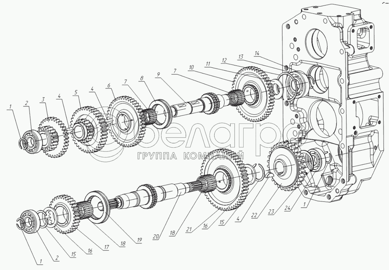 Каталог запасных частей к технике: МТЗ 622. Вал I промежуточный. Вал вторичный
