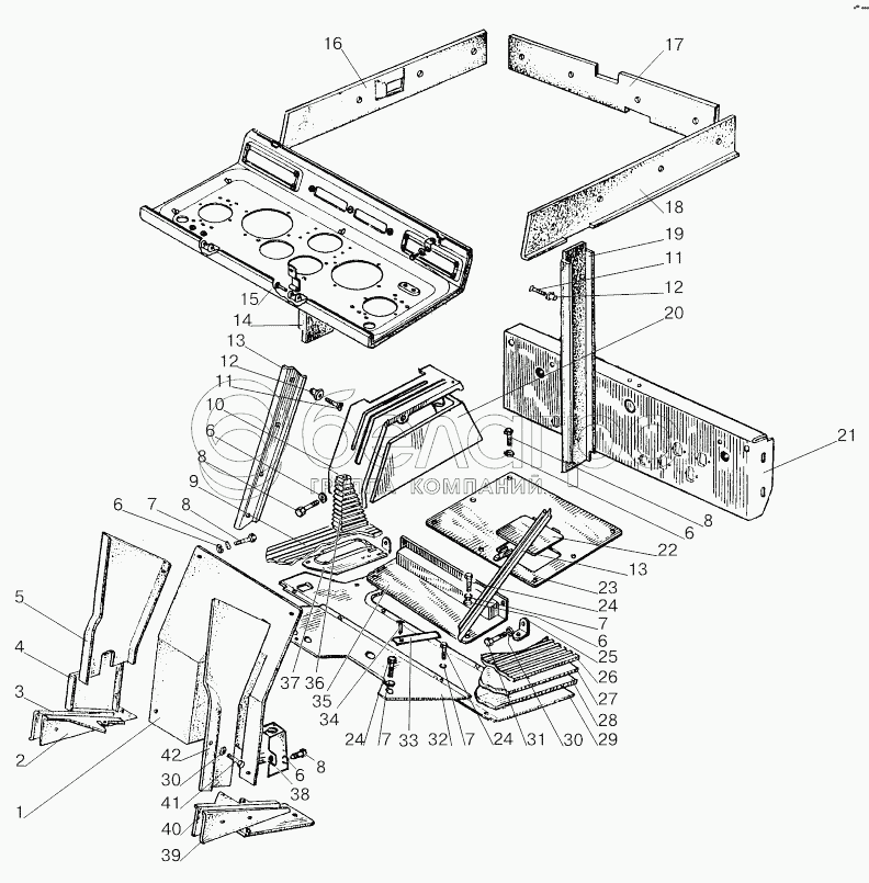 Каталог запасных частей к технике: МТЗ 800/900. Кабина трактора. Пол кабины