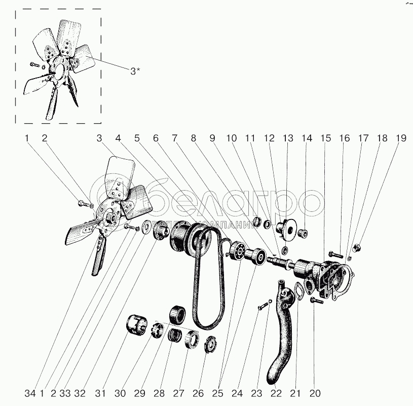 Каталог запасных частей к технике: МТЗ 800/900. Насос водяной и вентилятор