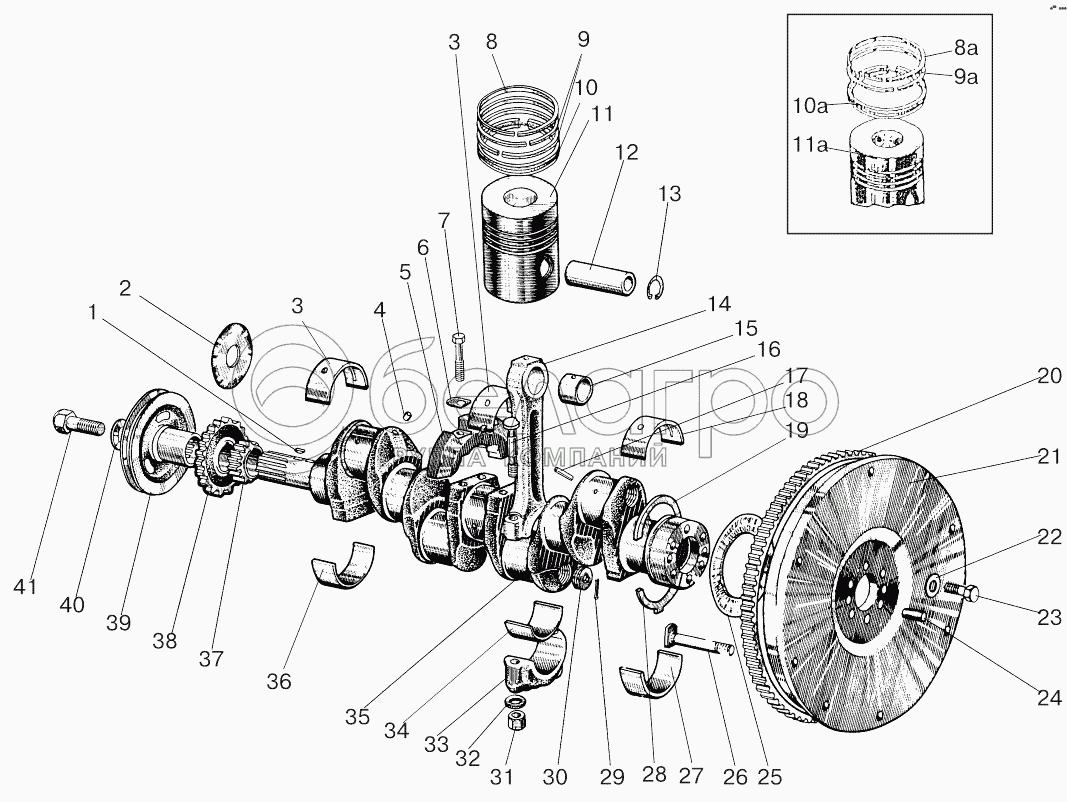 Каталог запасных частей к технике: МТЗ 800/900. Поршни и шатуны. Вал коленчатый и маховик