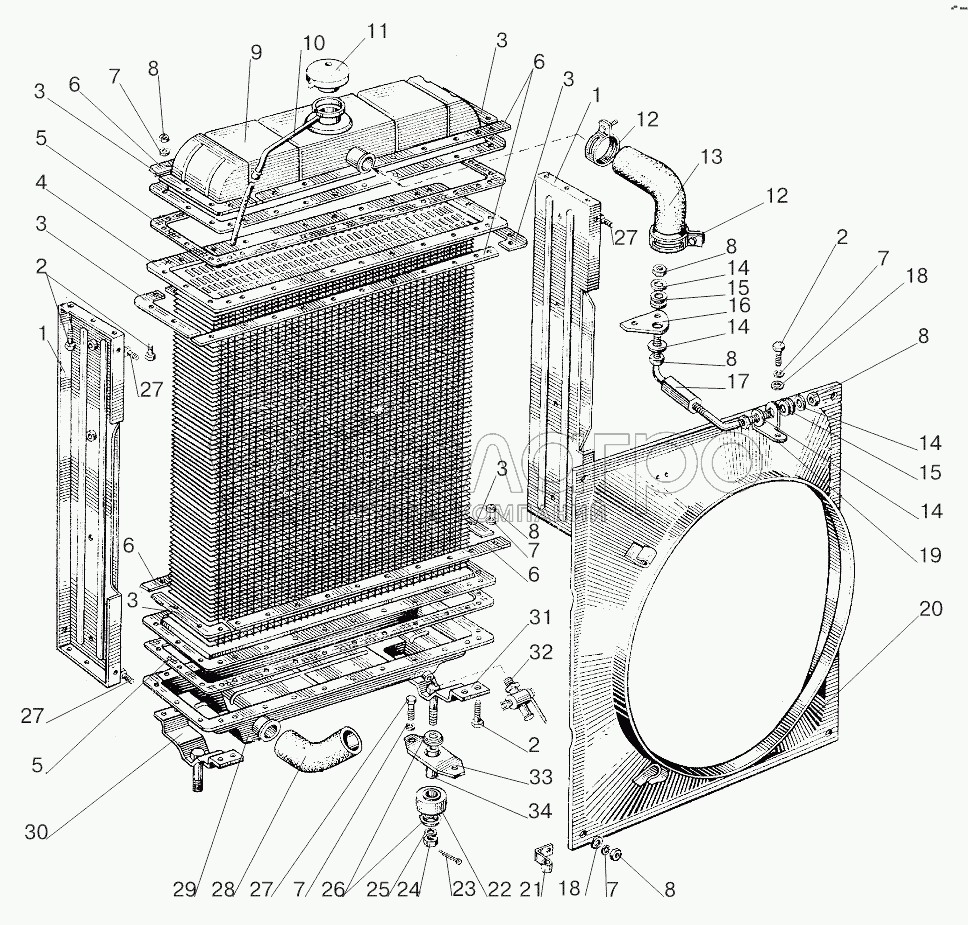Каталог запасных частей к технике: МТЗ 800/900. Радиатор водяной. Подвеска радиатора