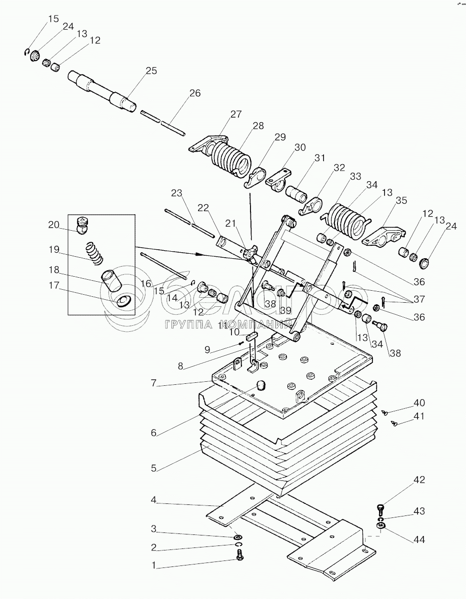 Каталог запасных частей к технике: МТЗ 800/900. Сиденье оператора. Механизм регулировки