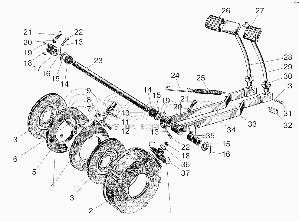 Каталог запасных частей к технике: МТЗ 800/900. Тормоза рабочие. Управление тормозами