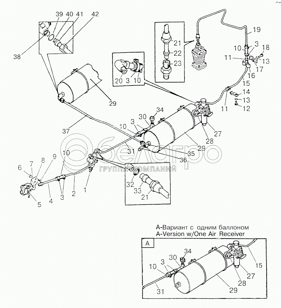 Каталог запасных частей к технике: МТЗ 800/900. Трубопроводы и арматура пневмопривода тормозов прицепа.