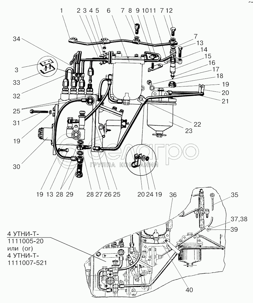 Каталог запасных частей к технике: МТЗ 800/900. Трубопроводы топливные и установка топливной аппаратуры