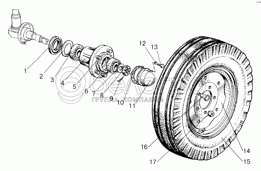 Каталог запасных частей к технике: МТЗ 80Х. Колеса передние направляющие. Ступицы передних колес