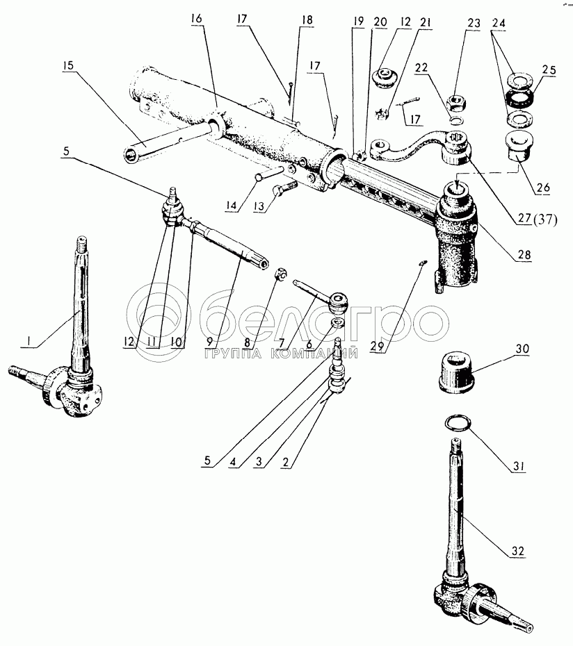 Каталог запасных частей к технике: МТЗ 80Х. Ось передняя и тяга рулевая