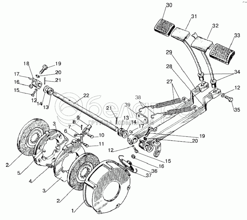 Каталог запасных частей к технике: МТЗ 80Х. Тормоза. Управление тормозами