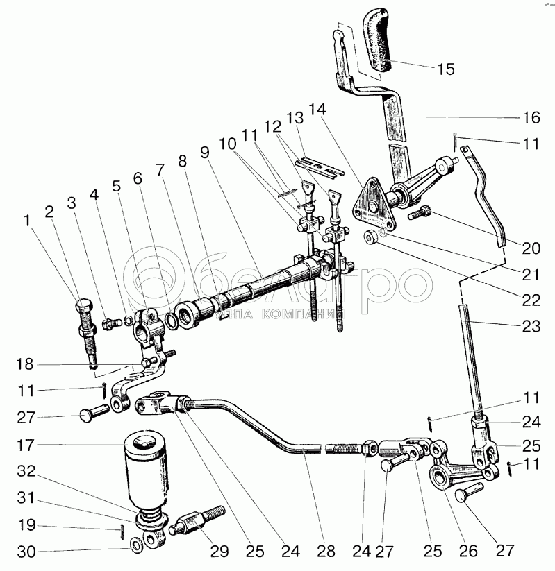 Каталог запасных частей к технике: МТЗ 80Х. Управление задним валом отбора мощности