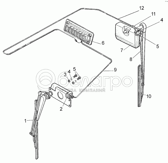Каталог запасных частей к технике: МТЗ 80Х. Установка стеклоочистителя