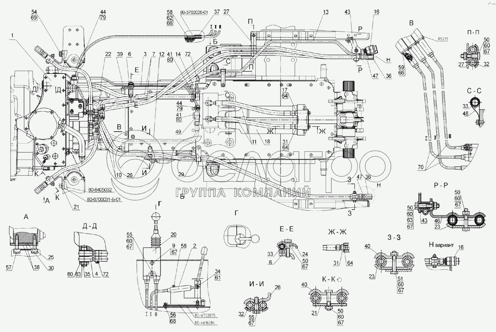 Каталог запасных частей к технике: МТЗ 892. Гидросистема 952-4600010 Основная комплектация