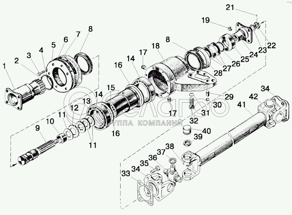 | 72-2203010-А2 Вал карданный МТЗ-82 переднего моста (4 отверстия) L=626 мм SPILE |
