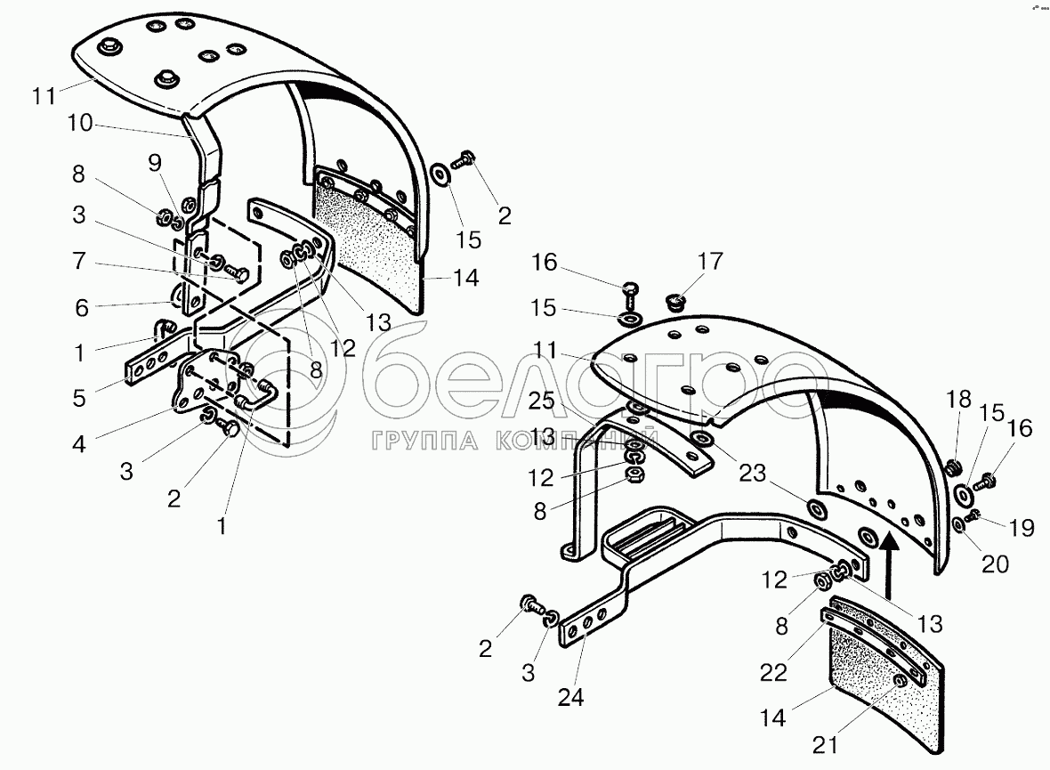 Каталог запасных частей к технике: МТЗ 892. Крылья передние (для ПВМ 72-2300020-А)