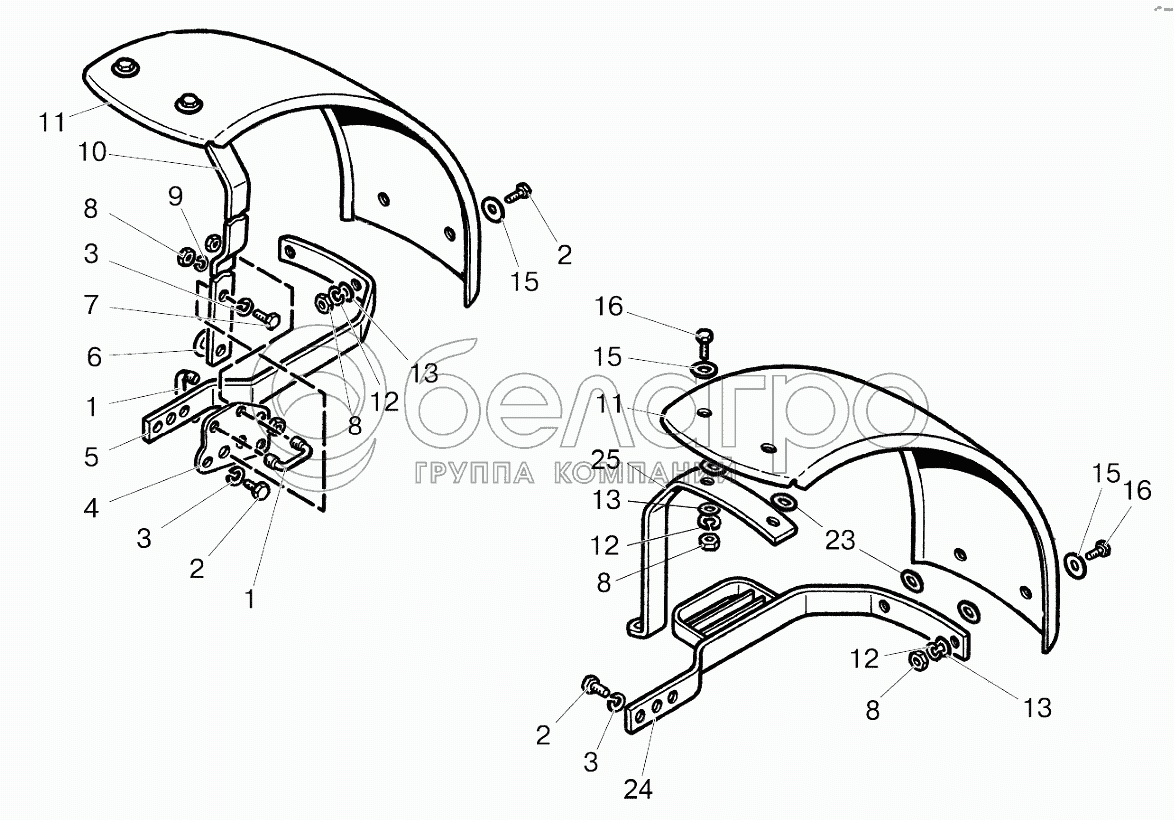 Каталог запасных частей к технике: МТЗ 892. Крылья передние (для ПВМ 72-2300020-А, вариант)