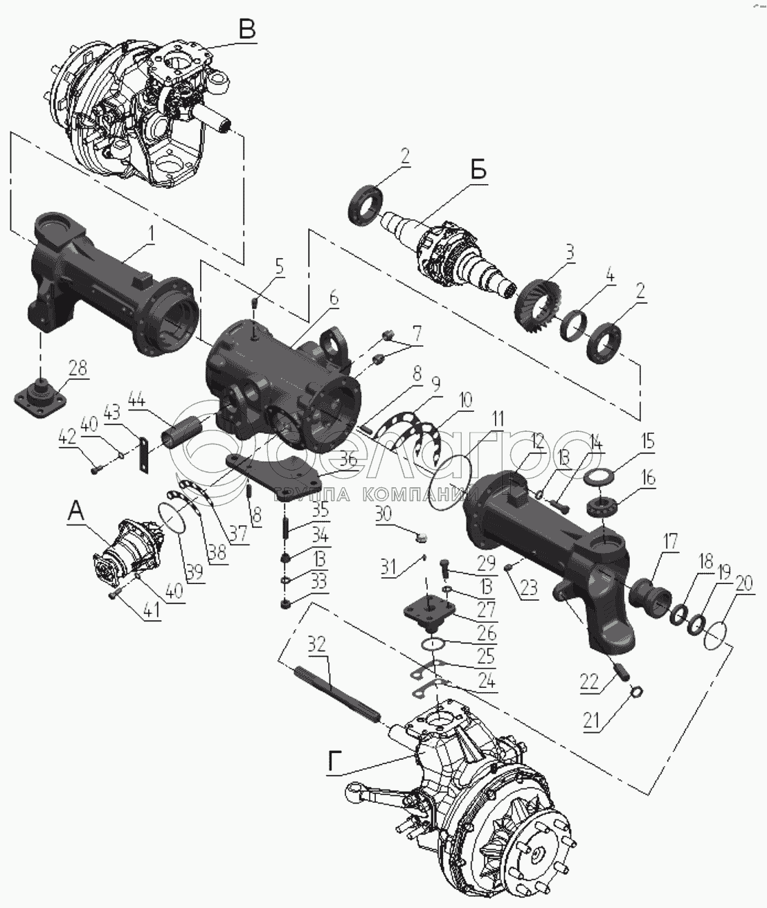 Каталог запасных частей к технике: МТЗ 892. Передний ведущий мост 822-2300020