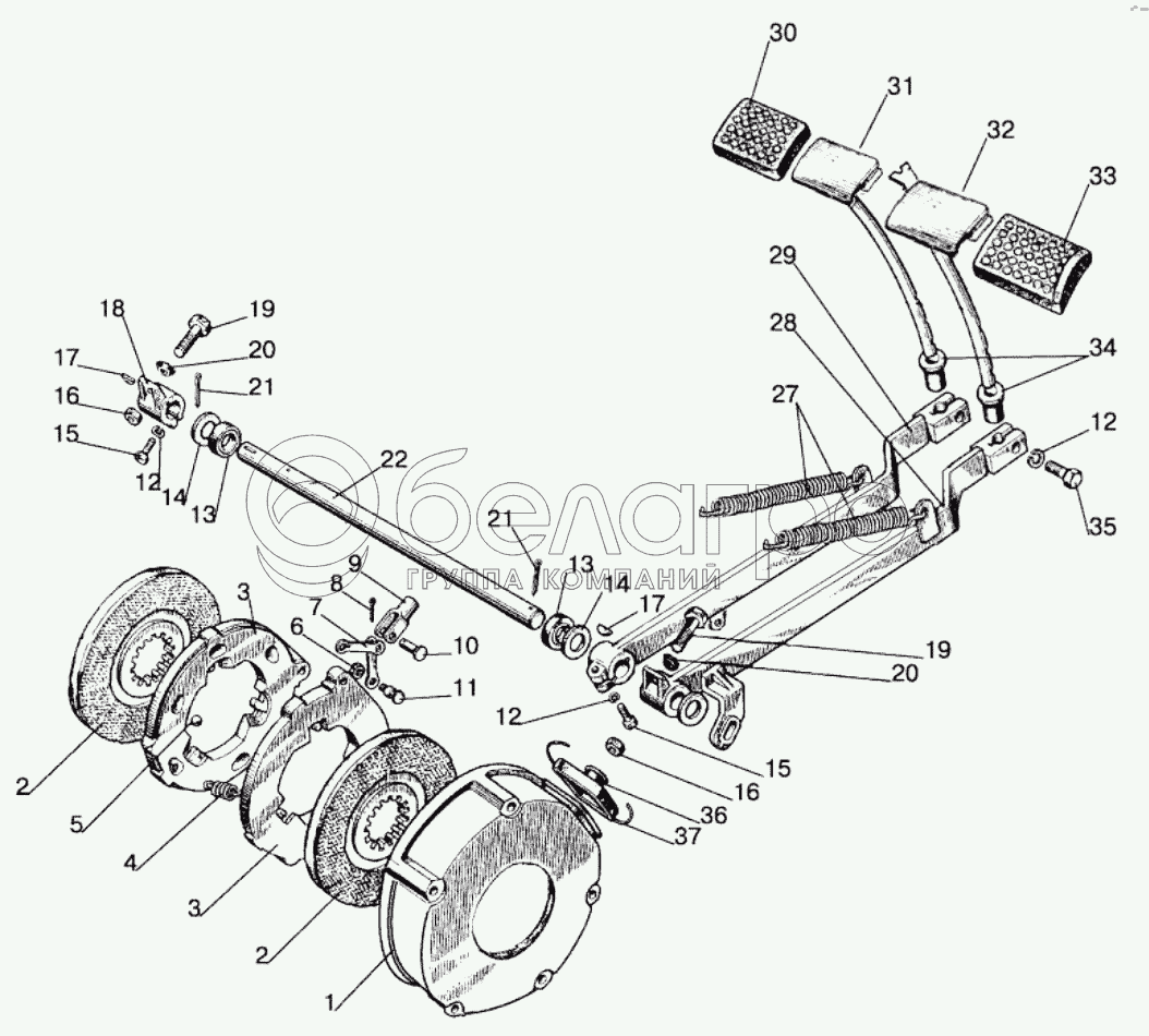 Каталог запасных частей к технике: МТЗ 892. Тормоза. Управление тормозами