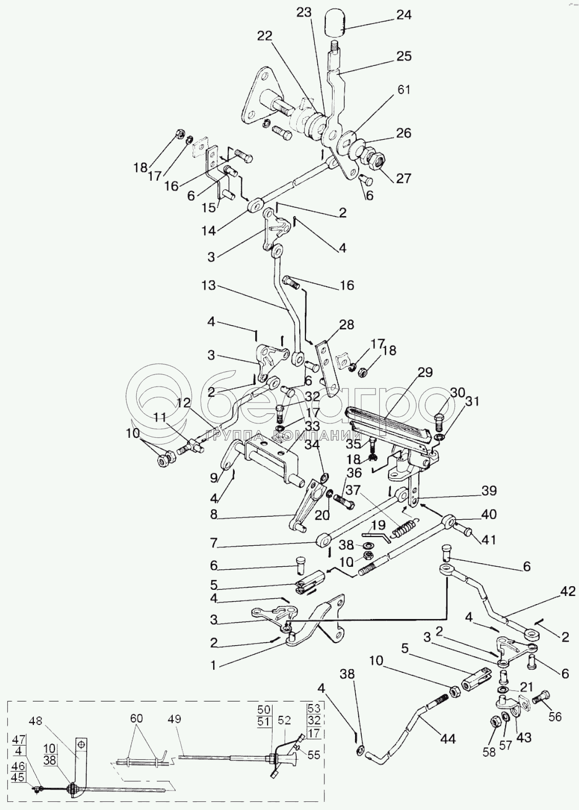 Каталог запасных частей к технике: МТЗ 892. Управление подачей топлива 800-1108500