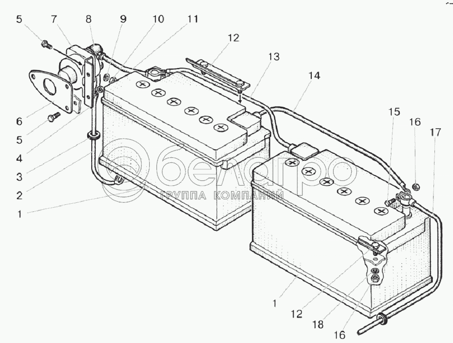 Каталог запасных частей к технике: МТЗ 892. Установка батарей аккумуляторных (система запуска 12В)