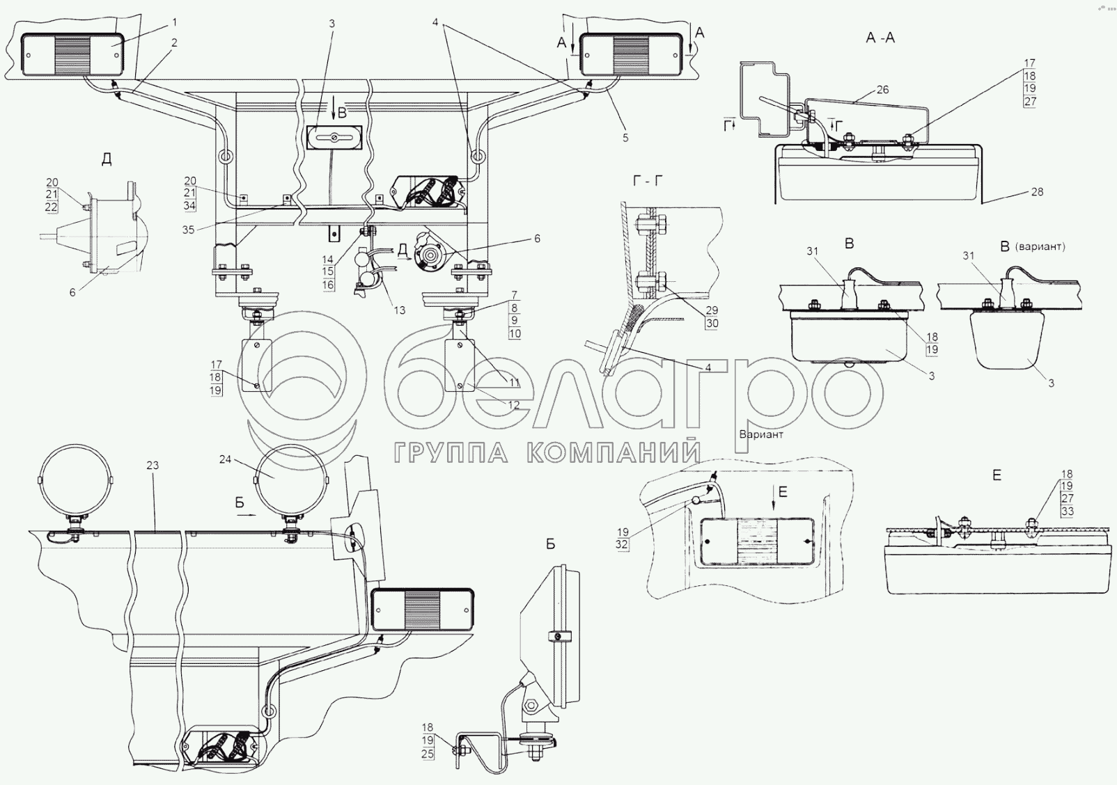 Каталог запасных частей к технике: МТЗ 892. Установка фонарей задних