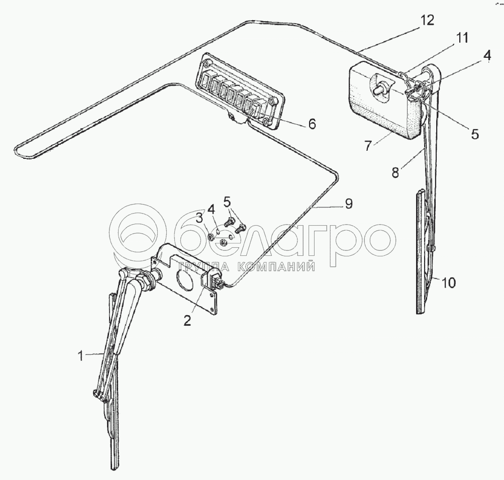 Каталог запасных частей к технике: МТЗ 892. Установка стеклоочистителя