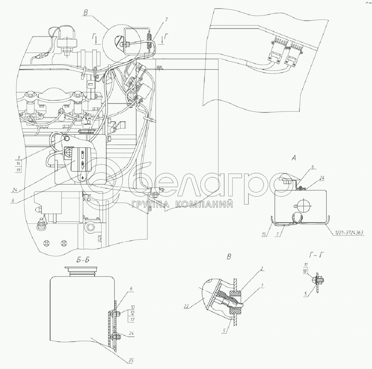 Каталог запасных частей к технике: МТЗ 892. Установка стеклоомывателя