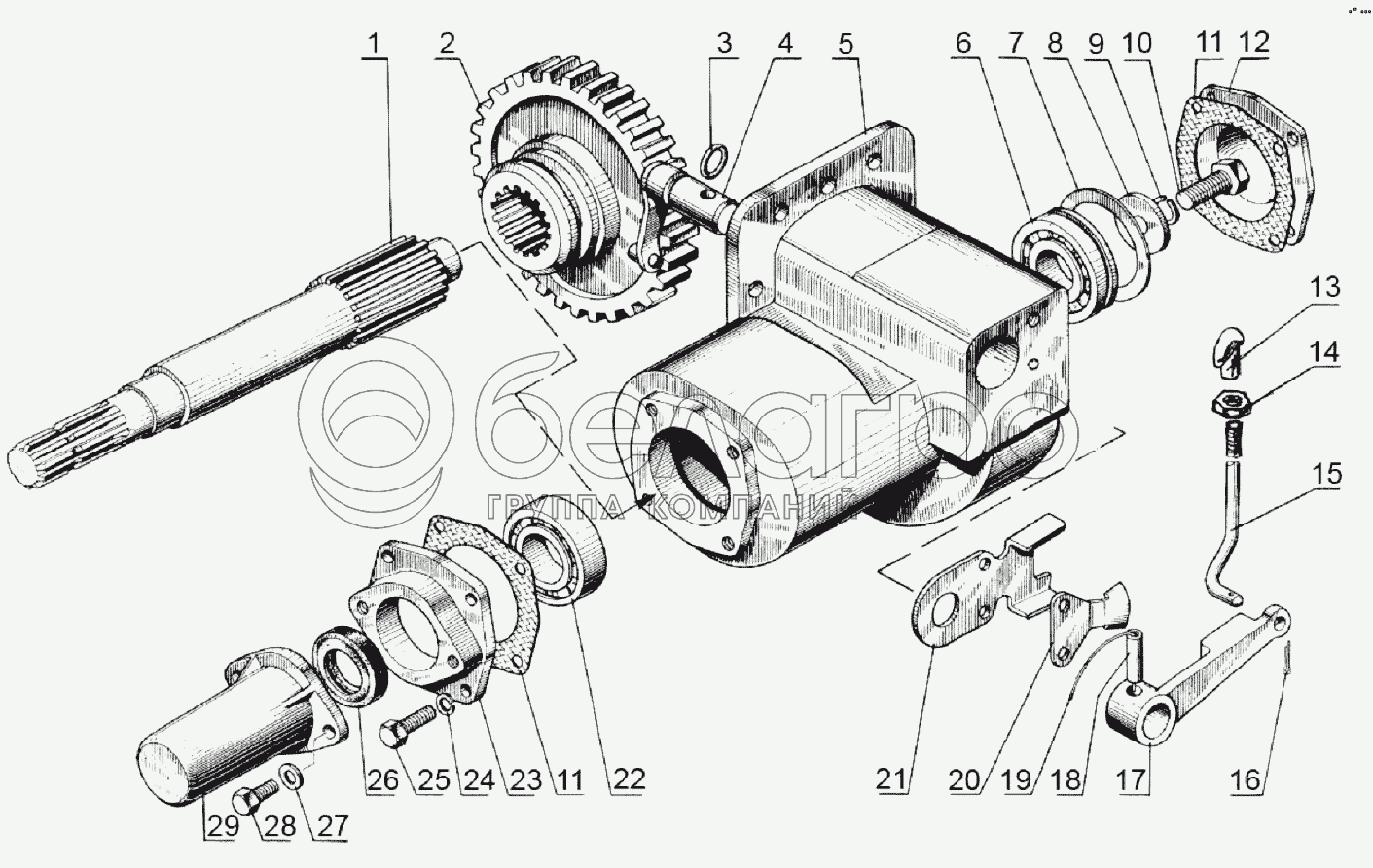 Каталог запасных частей к технике: МТЗ 892. Вал отбора мощности боковой