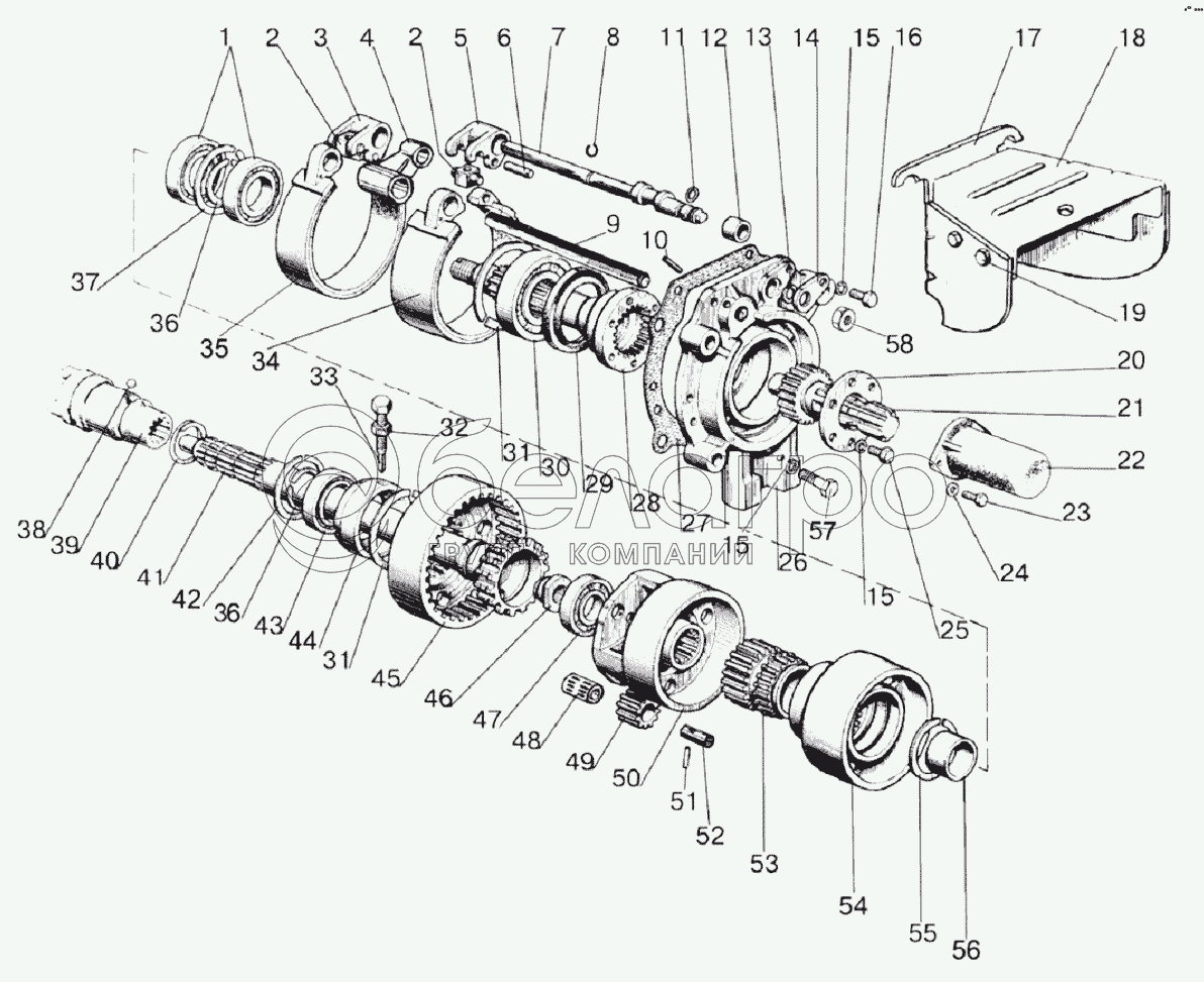 Каталог запасных частей к технике: МТЗ 892. Вал отбора мощности задний