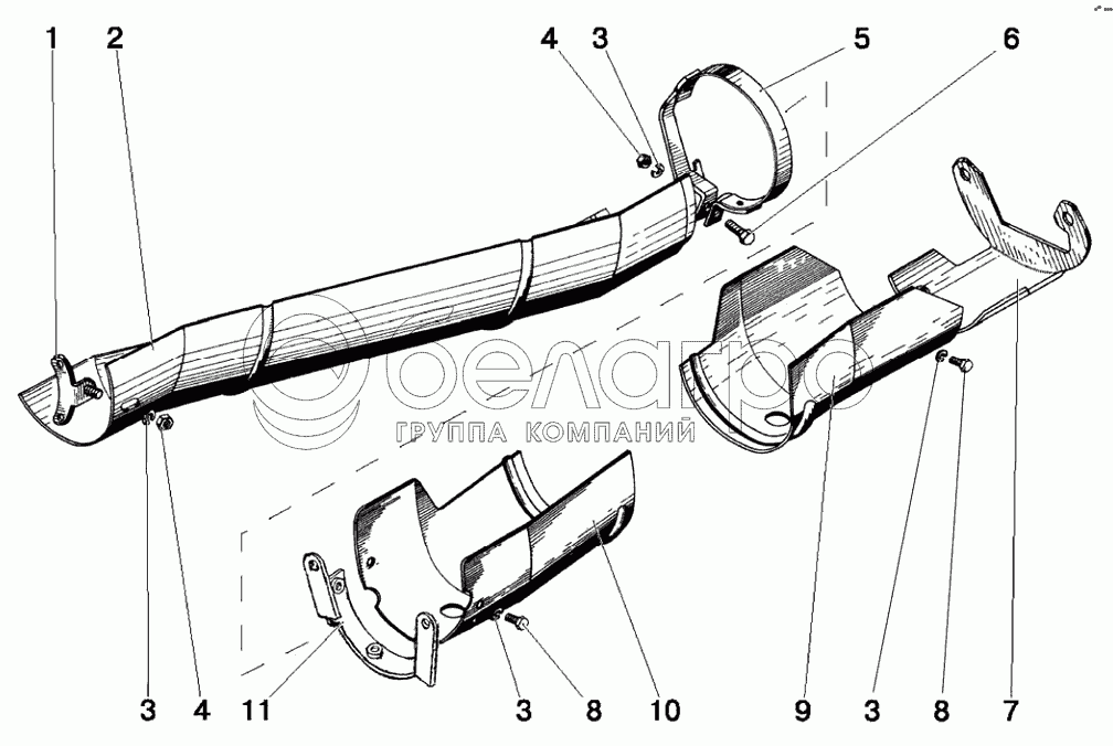 Каталог запасных частей к технике: МТЗ 922.3 / 922.4. Ограждение карданного привода