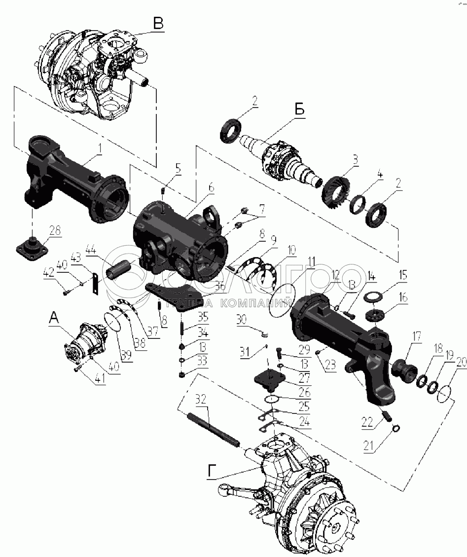 Каталог запасных частей к технике: МТЗ 922.3 / 922.4. Передний ведущий мост 822-2300020