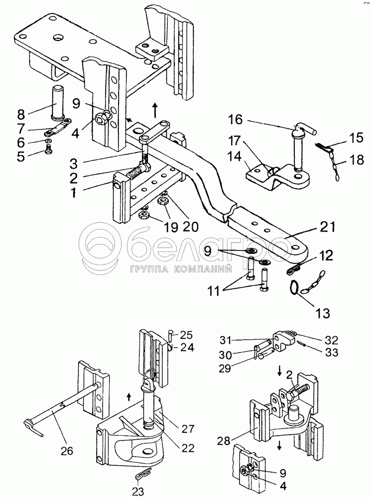 Каталог запасных частей к технике: МТЗ 922.3 / 922.4. Тягово-сцепное устройство (варианты комплектации)