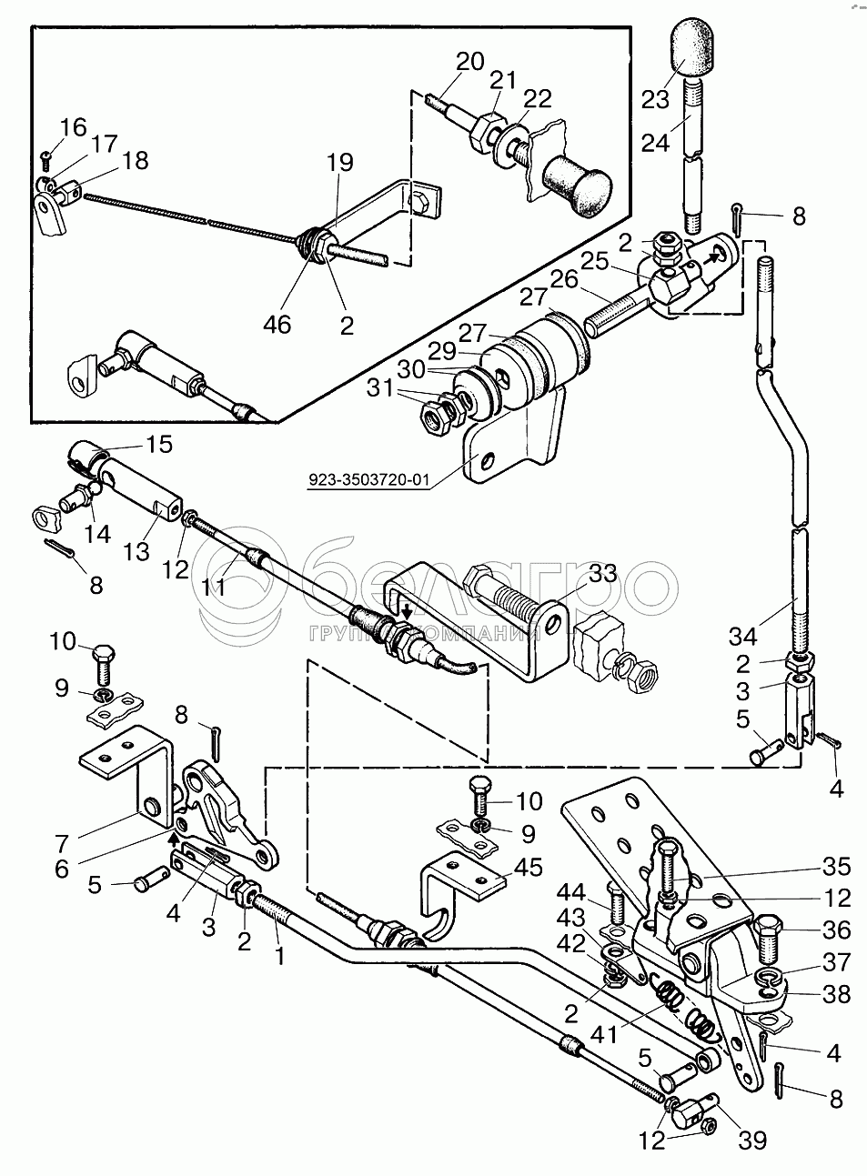 Каталог запасных частей к технике: МТЗ 922.3 / 922.4. Управление подачей топлива 821-1108000