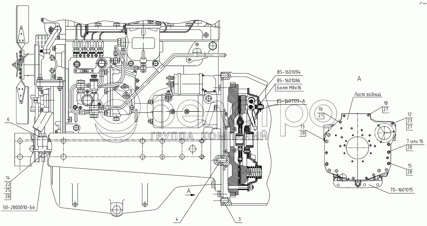 Каталог запасных частей к технике: МТЗ 922.3 / 922.4. Установка двигателя