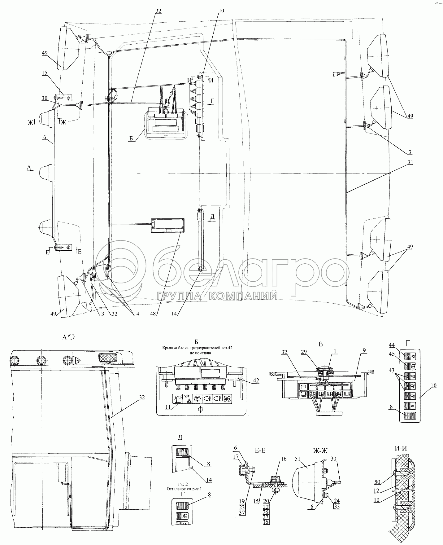Каталог запасных частей к технике: МТЗ 922.3 / 922.4. Установка фар рабочих