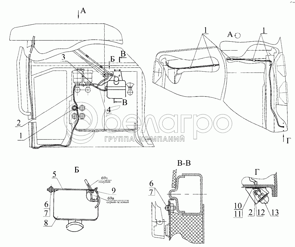 Каталог запасных частей к технике: МТЗ 922.3 / 922.4. Установка стеклоомывателя