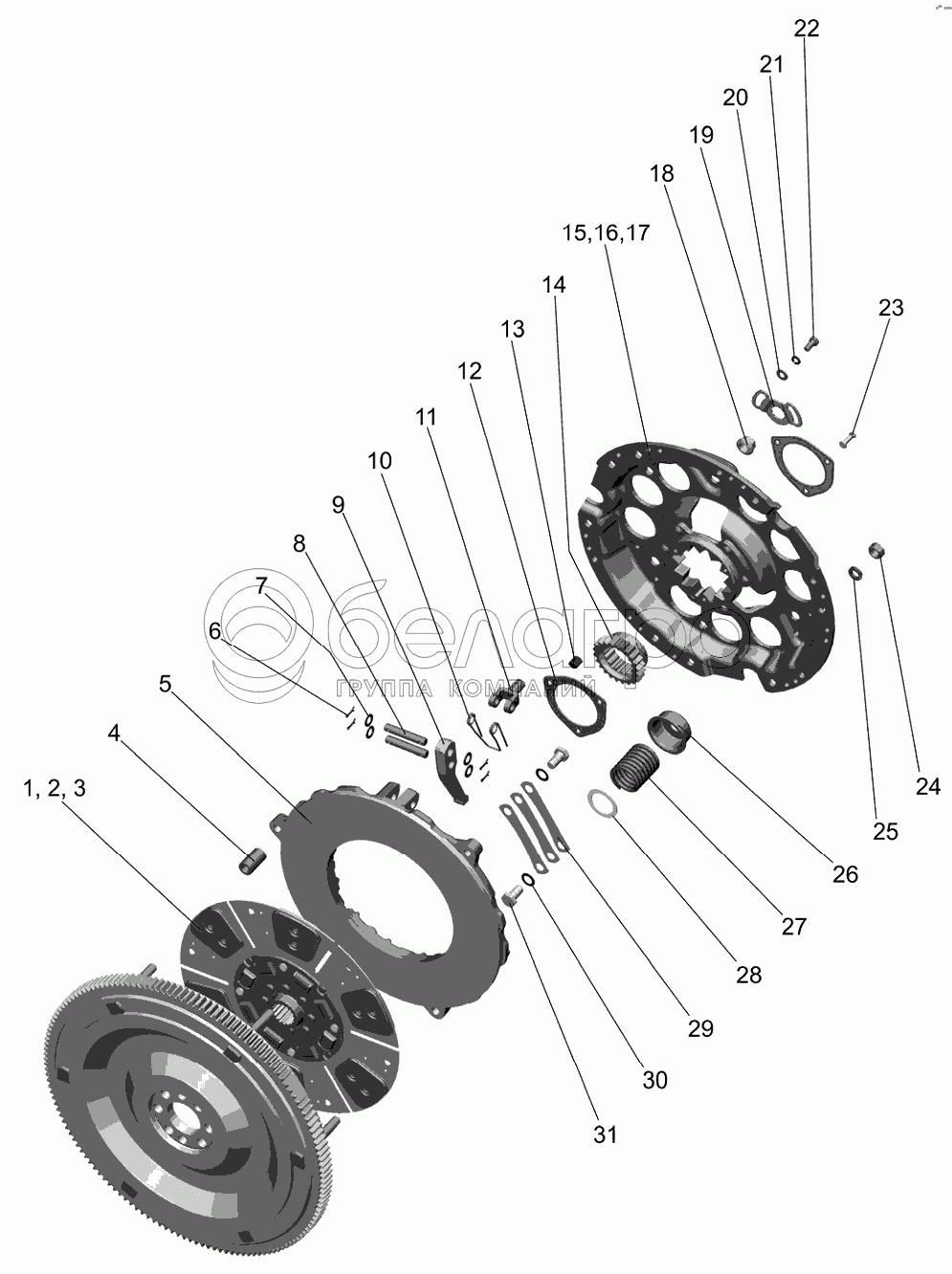 Каталог запасных частей к технике: МТЗ 922.3 / 922.4. Установка сцепления 240-1005009-06